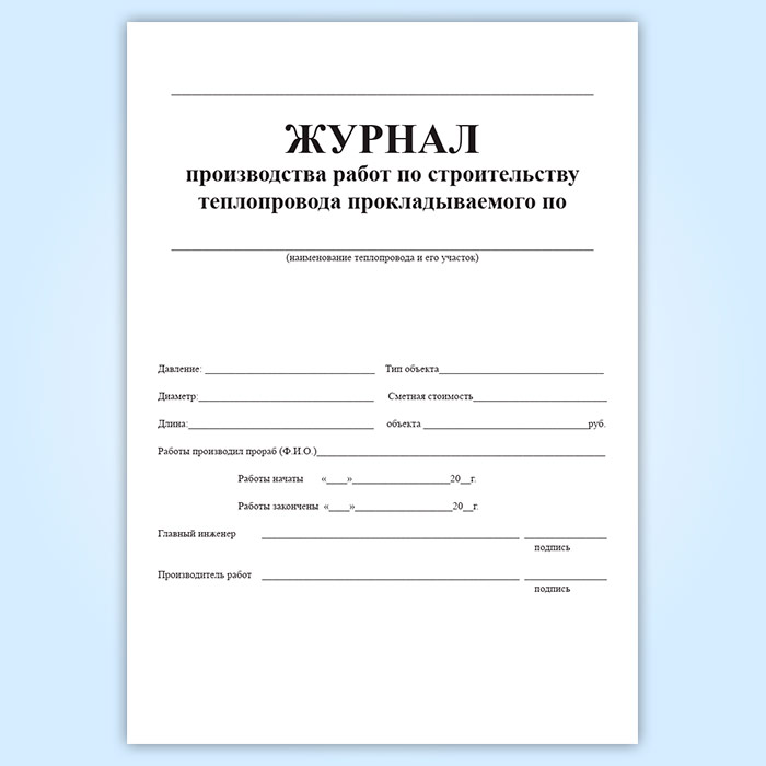 Журнал производства работ по строительству теплопровода в Великом Новгороде купить