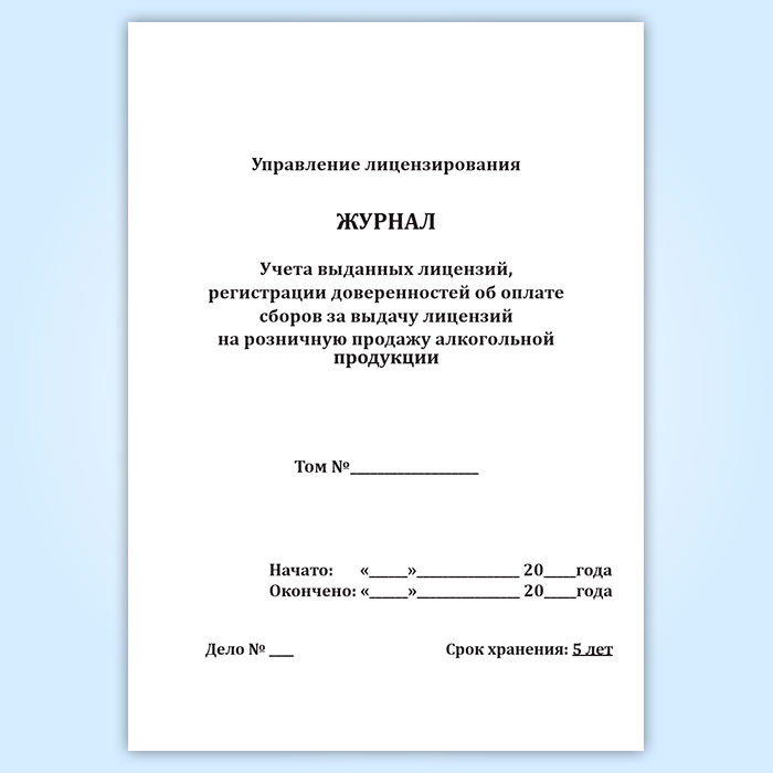 Журнал учета выданных лицензий, регистрации доверенностей об оплате сборов за выдачу лицензий на розничную продажу алкогольной продукции в Великом Новгороде купить