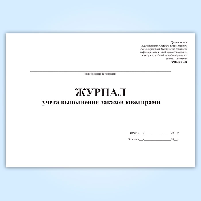Журнал учета выполнения заказов ювелирами (форма 2-ДМ) в Великом Новгороде купить