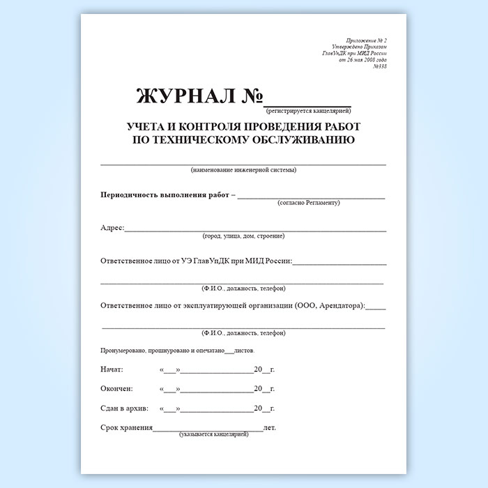 Журнал учета и контроля проведения работ по техническому обслуживанию в Великом Новгороде купить