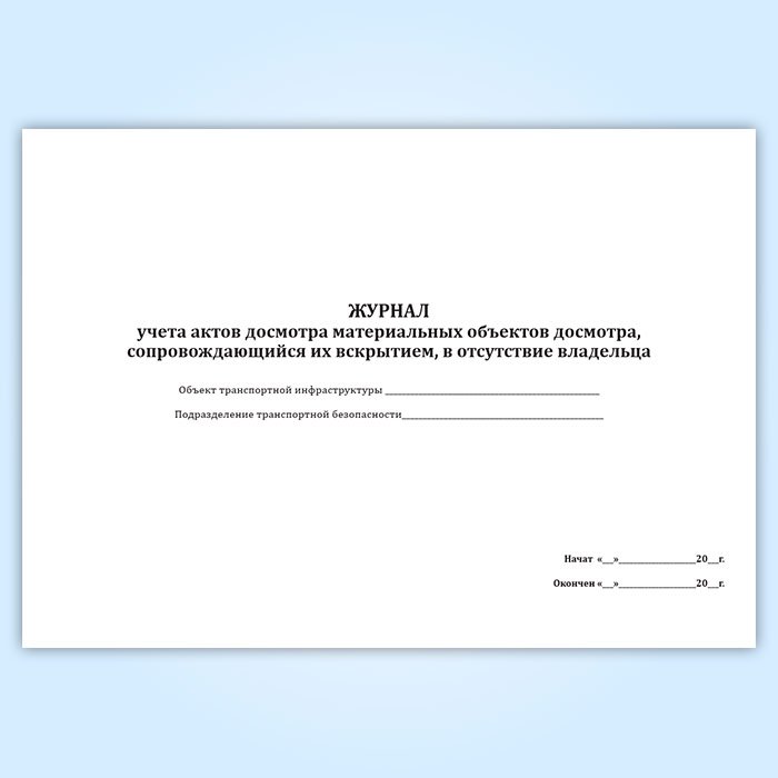 Журнал учета актов досмотра материальных объектов досмотра, сопровождающийся их вскрытием, в отсутствие владельца в Великом Новгороде купить
