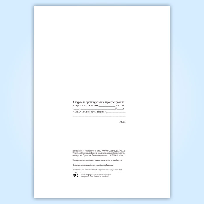 Вы получаете печатную продукцию прошнурованной и c местом для вашей печати в соответствии с действующими нормативными документами: