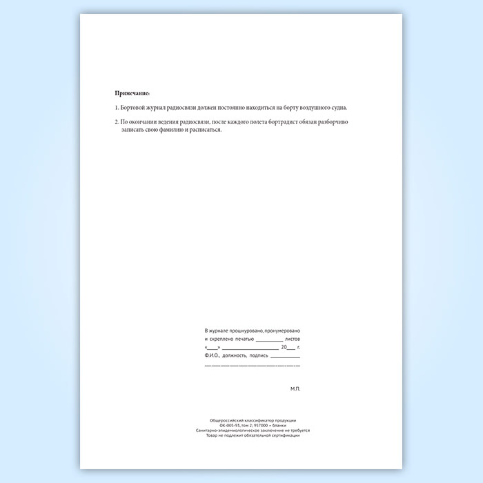 Бортовой журнал радиосвязи воздушного судна авиапредприятия в Великом Новгороде купить