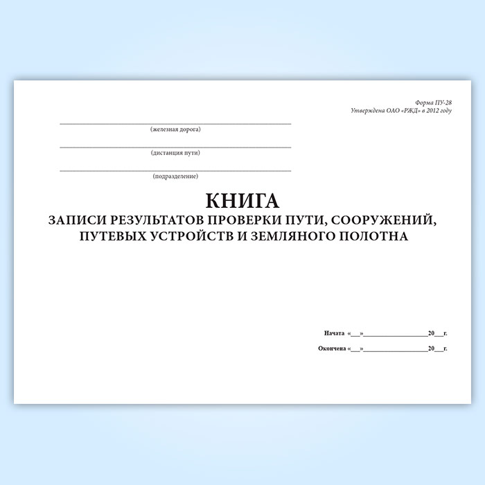 Книга записи результатов проверки пути, сооружений, путевых устройств и земляного полотна (форма ПУ-28) в Великом Новгороде купить