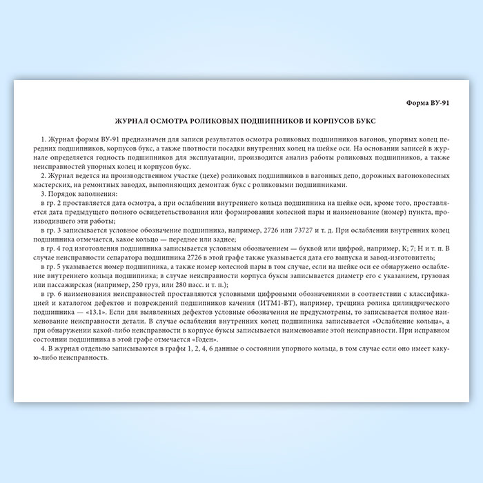 Журнал осмотра роликовых подшипников и корпусов букс (форма ВУ-91) в Великом Новгороде купить