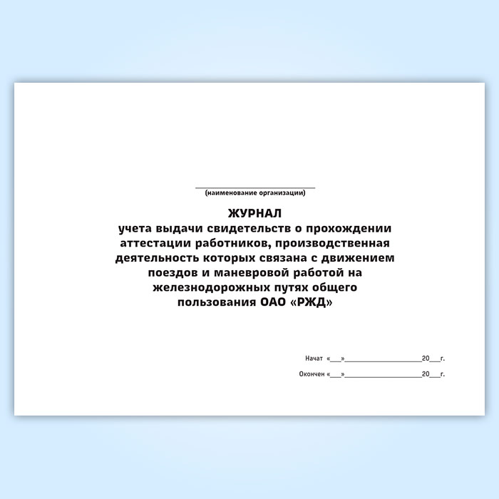 Журнал учета выдачи свидетельств о прохождении аттестации работников, производственная деятельность которых связана с движением поездов и маневровой работой на железнодорожных путях общего пользования ОАО «РЖД» в Великом Новгороде купить
