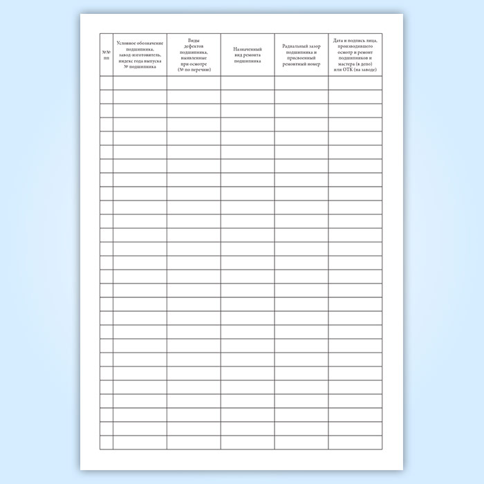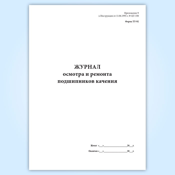 Журнал осмотра и ремонта подшипников качения (форма ТУ-92) в Великом Новгороде купить