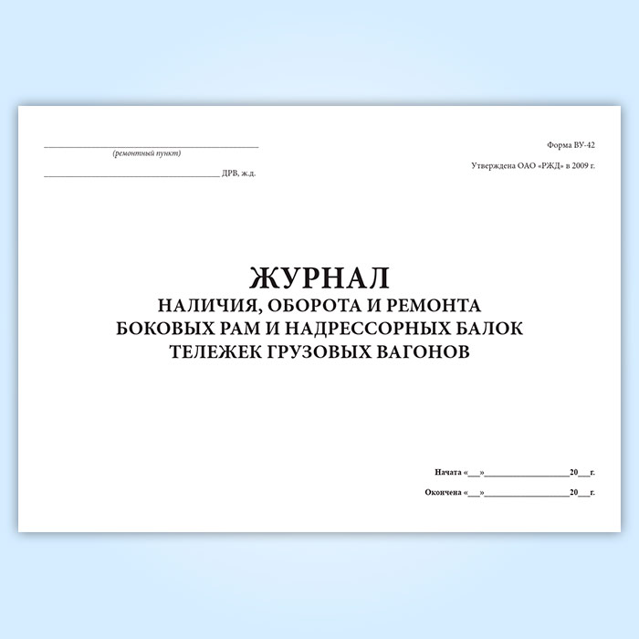 Журнал учета наличия, оборот и ремонт боковых рам и надрессорных балок тележек грузовых вагонов (форма ВУ-42) в Великом Новгороде купить
