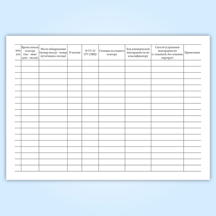 Книга регистрации коммерческих неисправностей вагонов в поездах в пунктах коммерческого осмотра (форма ГУ-98ВЦ) в Великом Новгороде купить