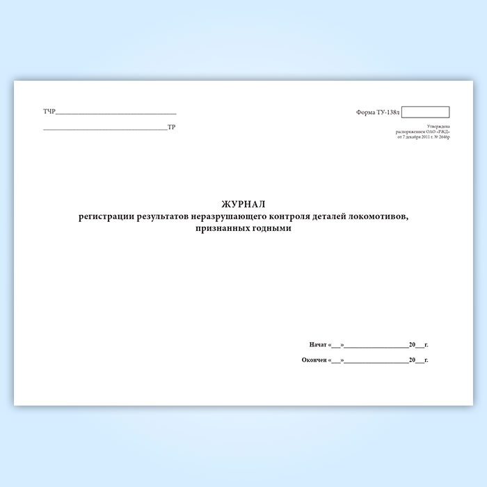 Журнал регистрации результатов неразрушающего контроля деталей локомотивов, признанных годными (форма ТУ-138л) в Великом Новгороде купить