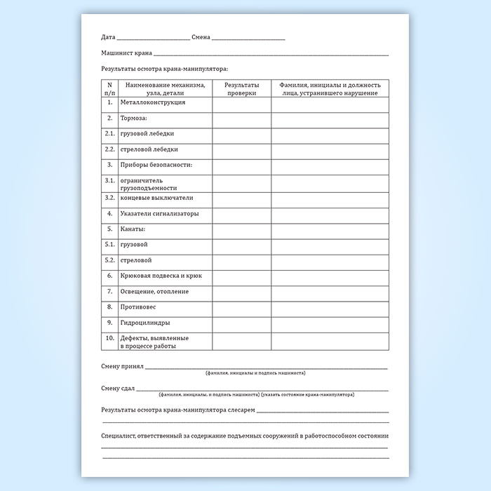 Вахтенный журнал машиниста грузоподъемного крана-манипулятора в Великом Новгороде купить