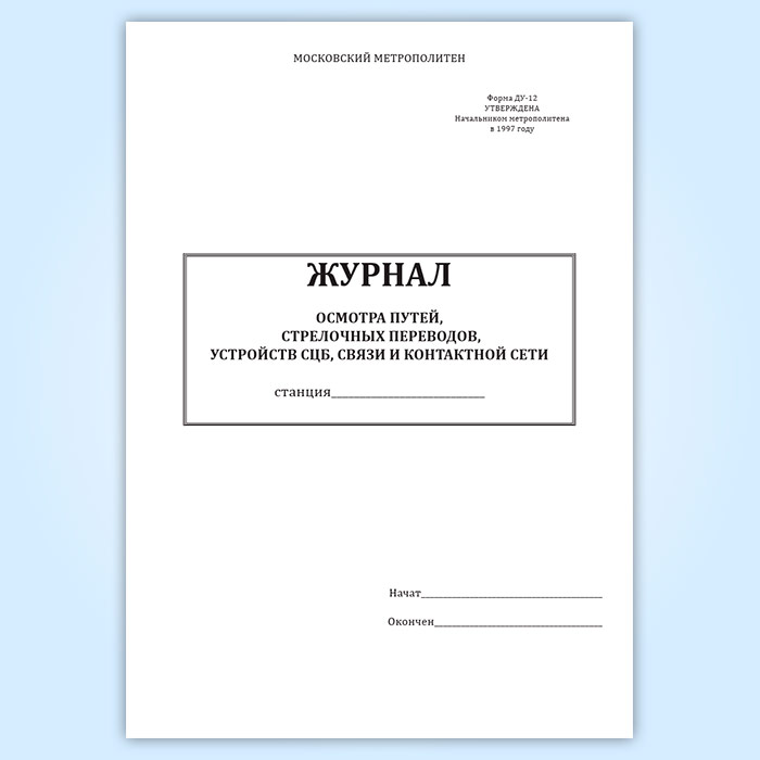Журнал осмотра путей, стрелочных переводов, устройств СЦБ, связи и контактной сети (форма ДУ-12) в Великом Новгороде купить