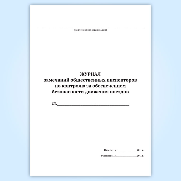 Журнал замечаний общественных инспекторов по контролю за обеспечением безопасности движения поездов в Великом Новгороде купить