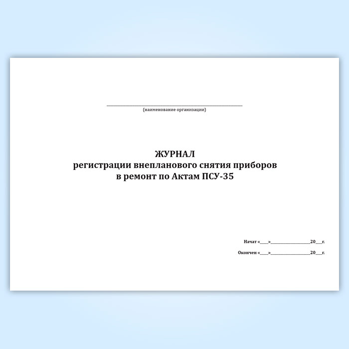 Журнал регистрации внепланового снятия приборов в ремонт по Актам ПСУ-35 в Великом Новгороде купить