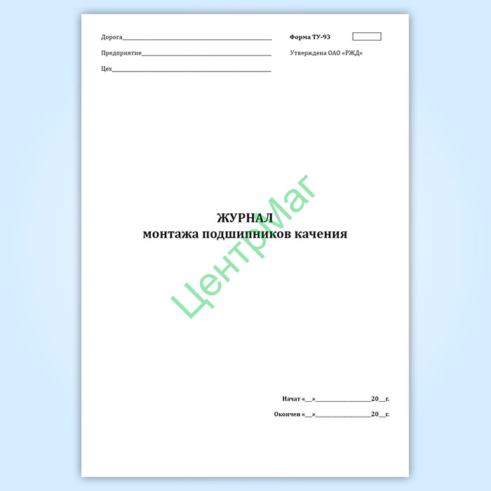 Журнал монтажа подшипников качения (форма ТУ-93) в Великом Новгороде купить