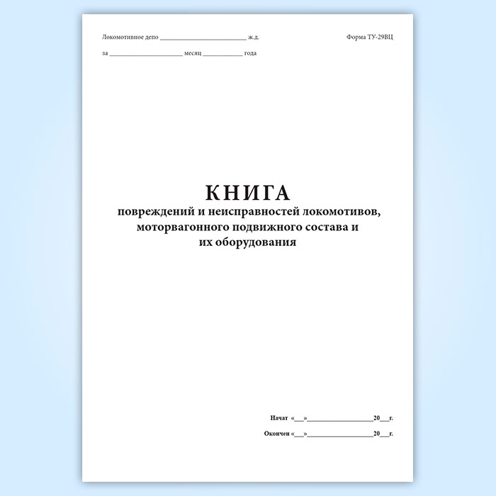 Книга повреждений и неисправностей локомотивов, моторвагонного подвижного состава и их оборудования (форма ТУ-29ВЦ) в Великом Новгороде купить