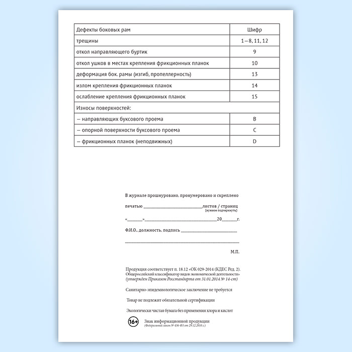 Журнал учета результатов осмотра и дефектоскопирования боковых рам тележек грузовых вагонов в Великом Новгороде купить
