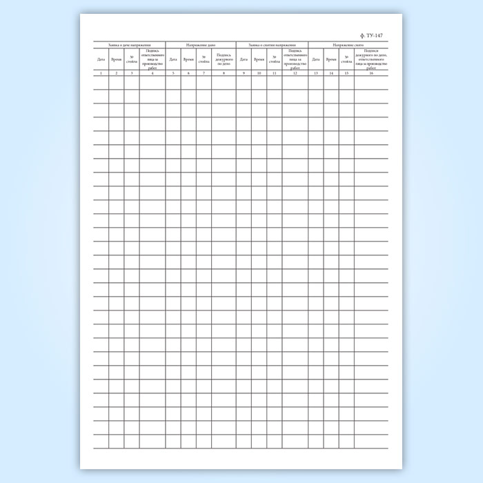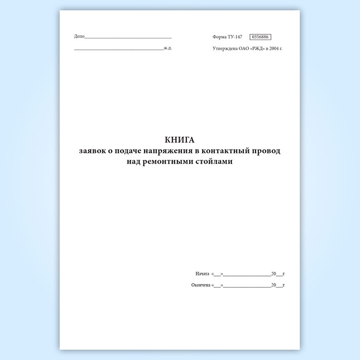 Книга заявок о подаче напряжения в контактный провод над ремонтными стойлами (форма ТУ-147) в Великом Новгороде купить