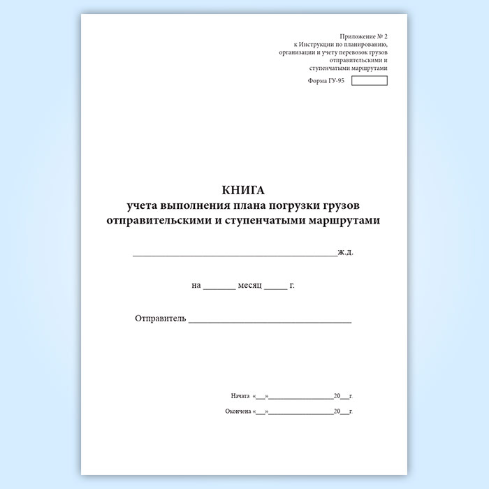 Книга учета выполнения плана погрузки грузов отправительскими и ступенчатыми маршрутами (форма ГУ-95) в Великом Новгороде купить