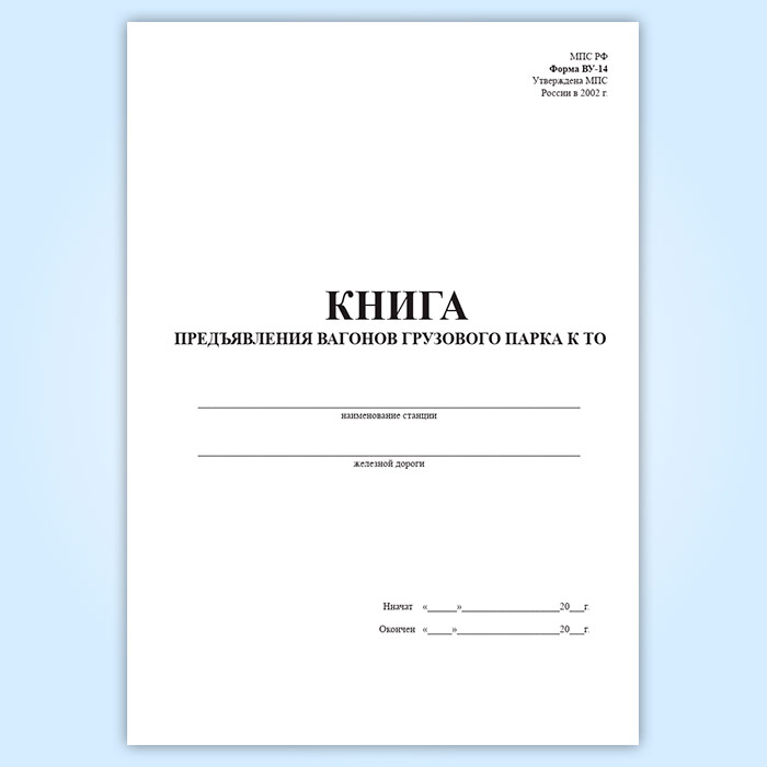 Книга предъявления вагонов грузового парка к ТО (форма ВУ-14) в Великом Новгороде купить