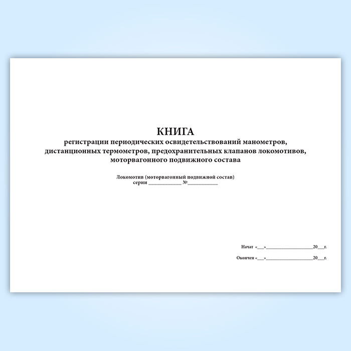 Книга регистрации периодических освидетельствований манометров, дистанционных термометров, предохранительных клапанов локомотивов, моторвагонного подвижного состава (форма ТКУ-8) в Великом Новгороде купить