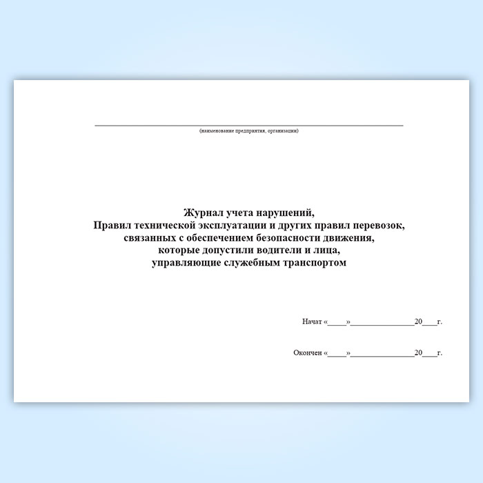Журнал учета нарушений, правил технической эксплуатации и других правил перевозок, связанных с обеспечением безопасности движения, которые допустили водители и лица, управляющие служебным транспортом в Великом Новгороде купить