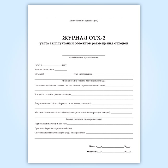 Журнал учета эксплуатации объектов размещения отходов ОТХ-2 в Великом Новгороде купить