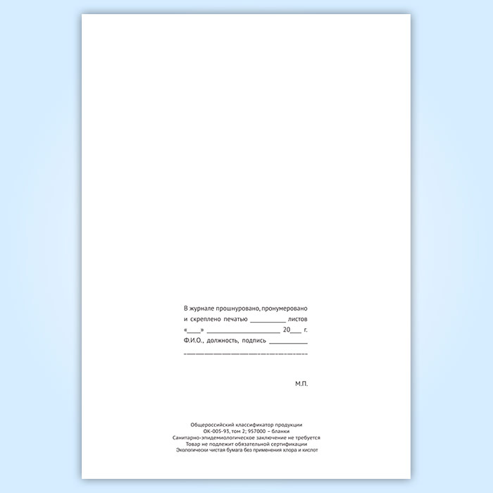 Вы получаете печатную продукцию прошнурованной и c местом для вашей печати в соответствии с действующими нормативными документами: