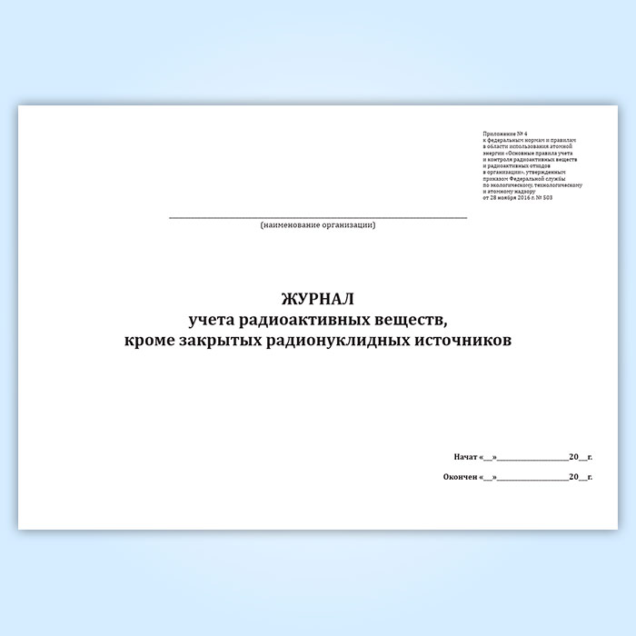 Журнал учета радиоактивных веществ, кроме закрытых радионуклидных источников в Великом Новгороде купить
