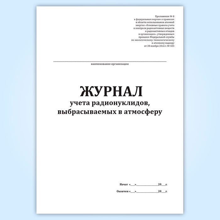 Журнал учета радионуклидов, выбрасываемых в атмосферу в Великом Новгороде купить