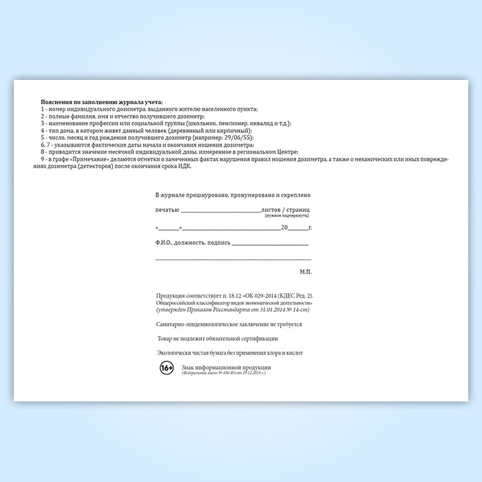 Журнал учета индивидуального дозиметрического контроля внешнего гамма-излучения в Великом Новгороде купить