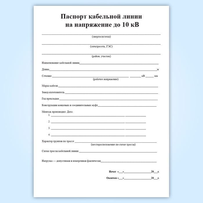 Паспорт кабельной линии на напряжение до 10 кВ в Великом Новгороде купить