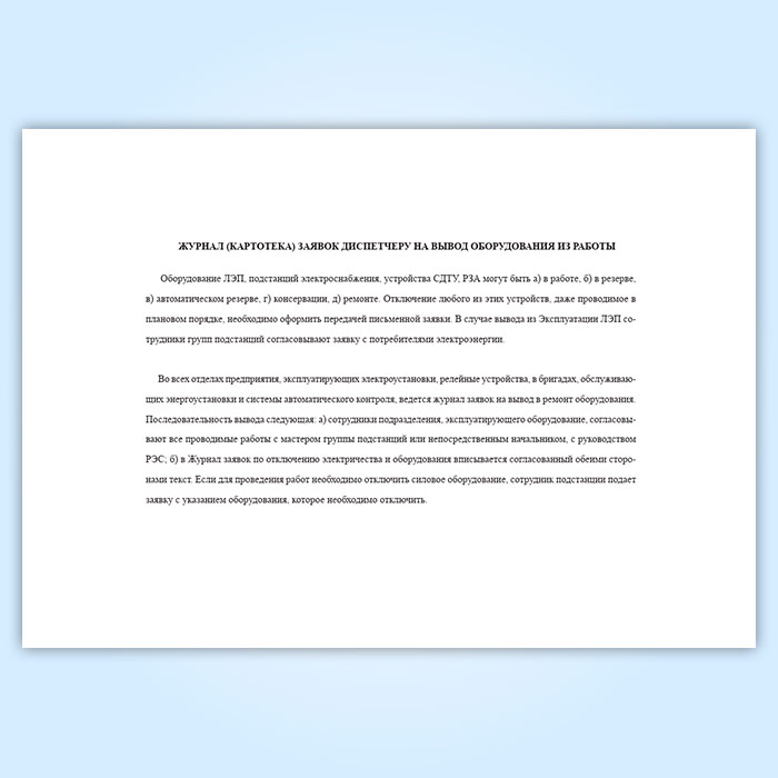 Журнал (картотека) заявок диспетчеру на вывод оборудования из работы в Великом Новгороде купить