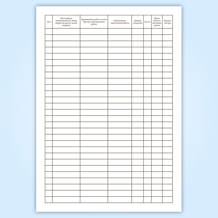 Журнал учета работ на ВЛ электропередачи напряжением 0,38-20 кВ в Великом Новгороде купить