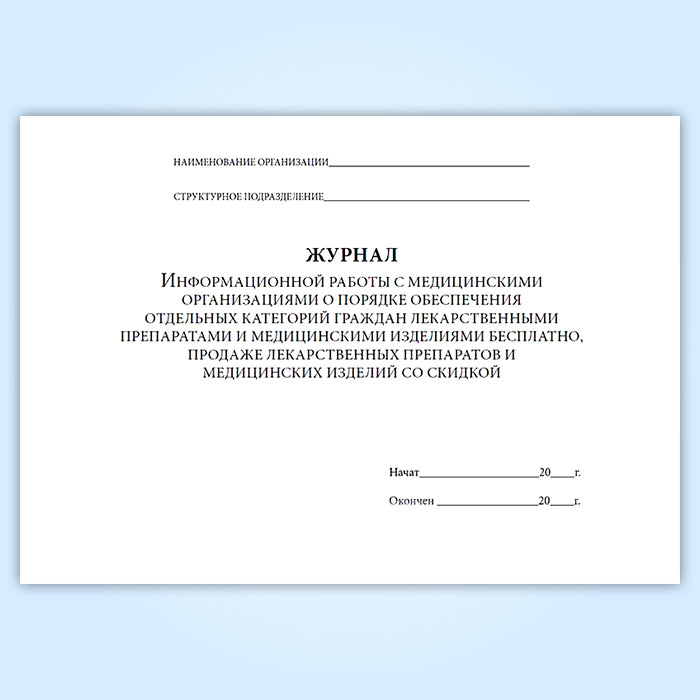 Журнал информационной работы с медицинскими организациями о порядке обеспечения отдельных категорий граждан лекарственными препаратами и медицинскими изделиями бесплатно, продаже лекарственных препаратов и медицинских изделий со скидкой в Великом Новгороде купить