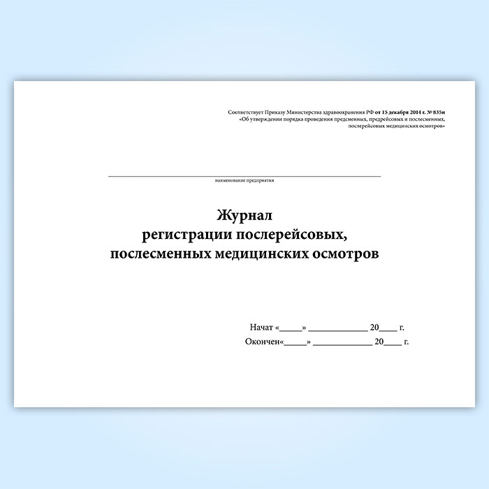 Журнал регистрации послерейсовых, послесменных медицинских осмотров в Великом Новгороде купить