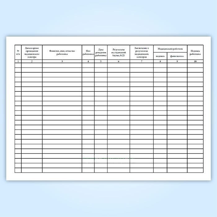 Журнал регистрации предрейсовых, предсменных медицинских осмотров (Приказ Минздрава РФ от 15 декабря 2014 г. N 835н) в Великом Новгороде купить