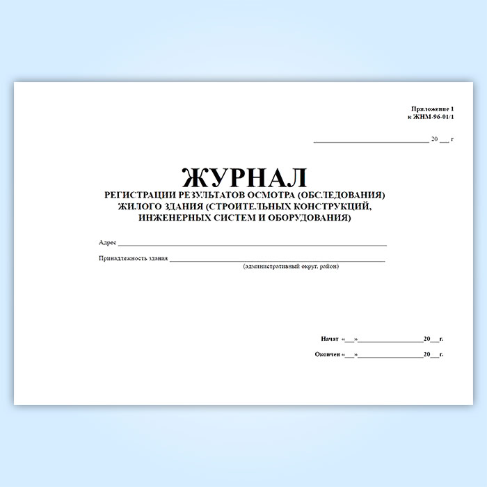 Журнал регистрации результатов осмотра (обследования) жилого здания (строительных конструкций, инженерных систем и оборудования). (Приложение к форме ЖНМ-96-01/1) в Великом Новгороде купить
