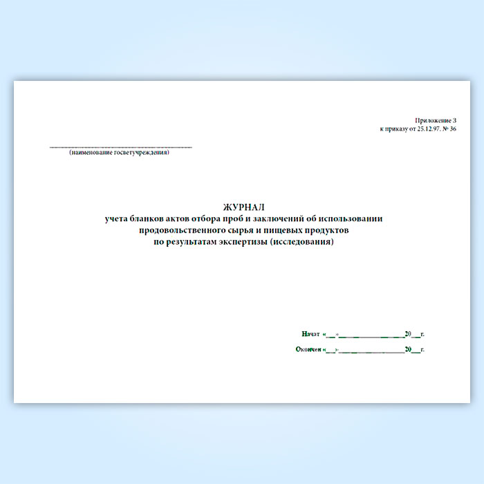 Журнал учета бланков отбора проб и заключений об использовании продовольственного сырья и пищевых продуктов в Великом Новгороде купить