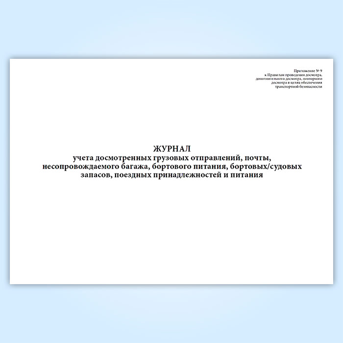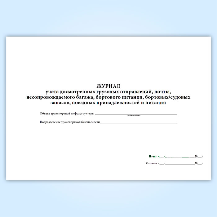 Журнал учета досмотренных грузовых отправлений, почты несопровождаемого багажа, бортового питания, бортовых/судовых запасов, поездных принадлежностей и питания в Великом Новгороде купить