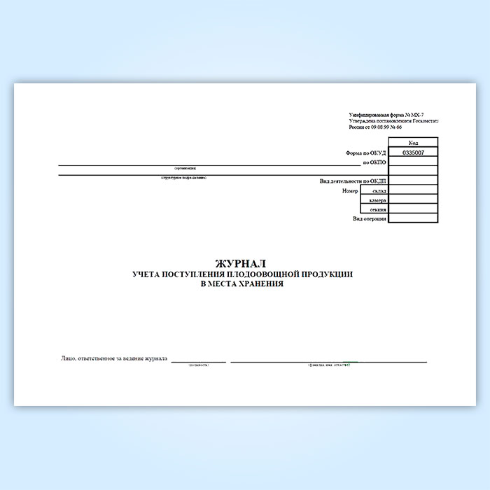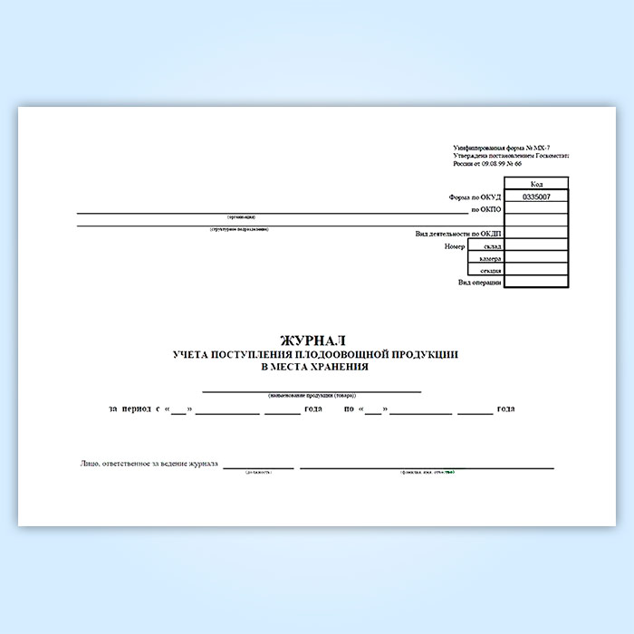 Журнал учета поступления плодоовощной продукции в места хранения (форма МХ-7) в Великом Новгороде купить