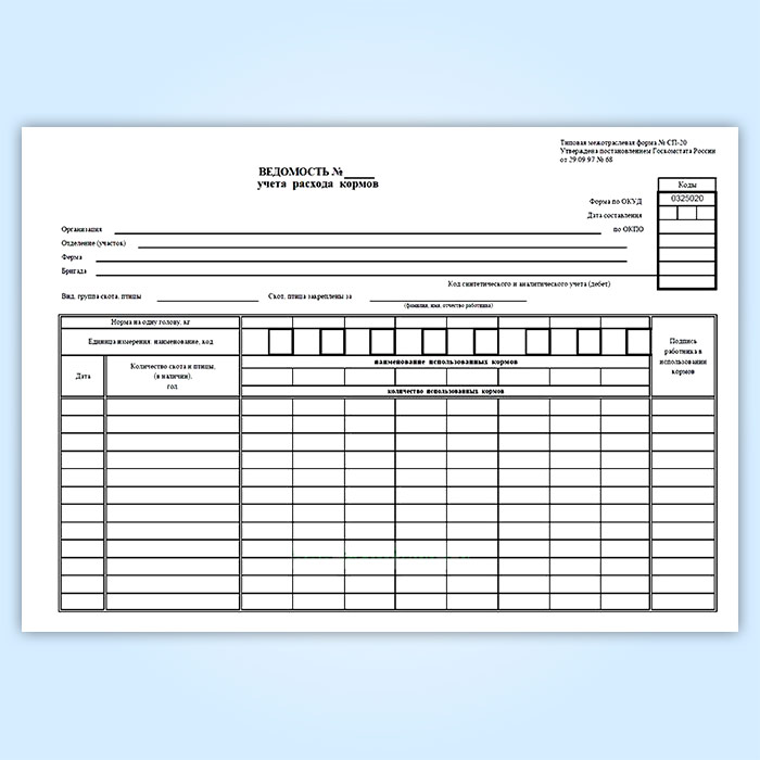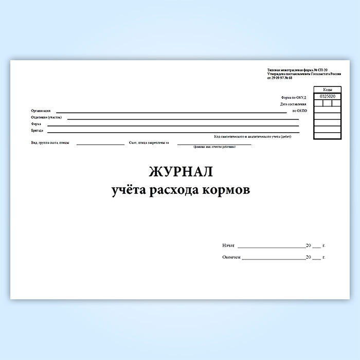 Журнал учета расхода кормов (форма № СП-20) в Великом Новгороде купить