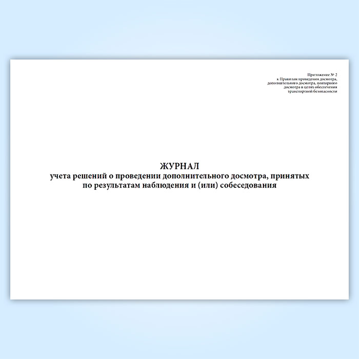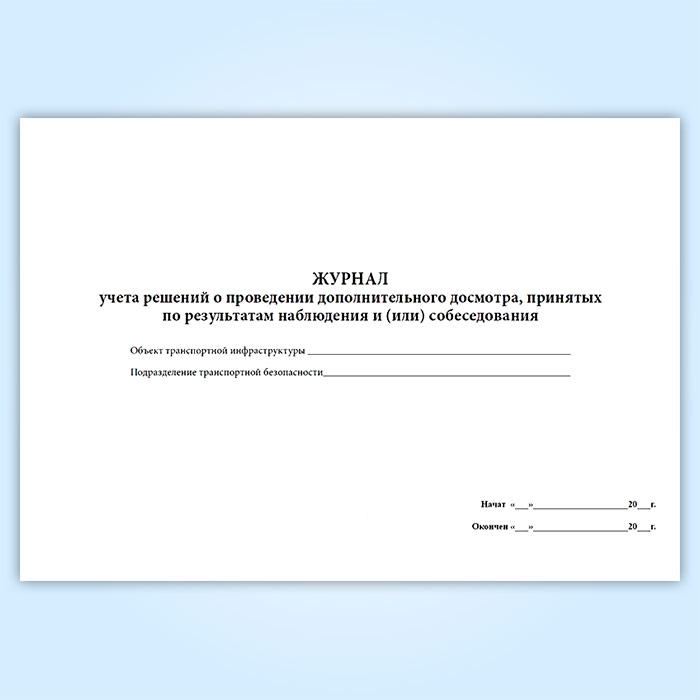 Журнал учета решений о проведении дополнительного досмотра, принятых по результатам наблюдения и (или) собеседования в Великом Новгороде купить