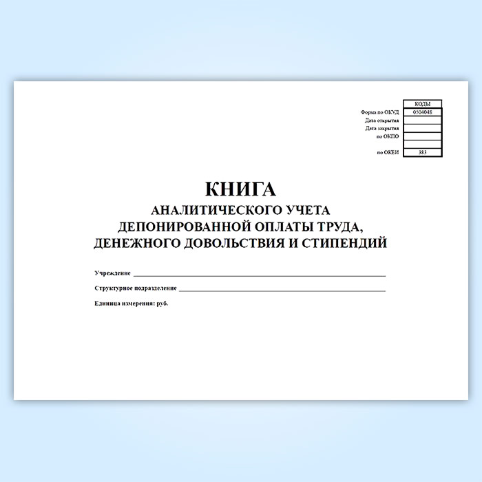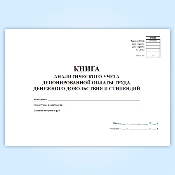 Книга аналитического учета депонированной заработной платы, денежного довольствия и стипендий (код формы 0504048) в Великом Новгороде купить