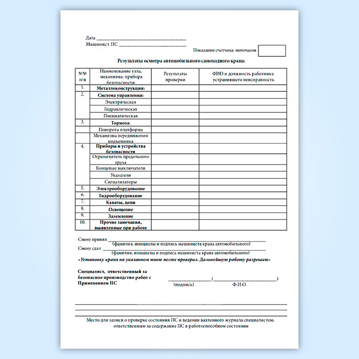 Вахтенный журнал машиниста автомобильного стрелового крана в Великом Новгороде купить