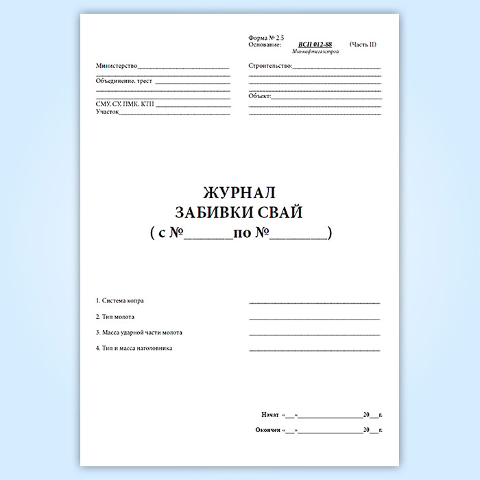Журнал забивки свай (форма 2.5) в Великом Новгороде купить