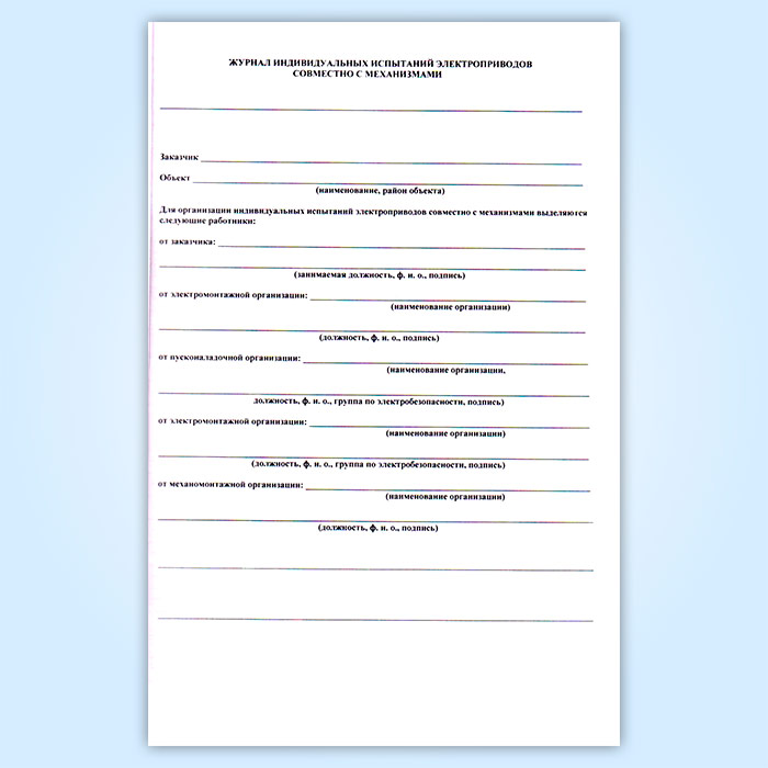 Журнал индивидуальных испытаний электроприводов совместно с механизмами в Великом Новгороде купить