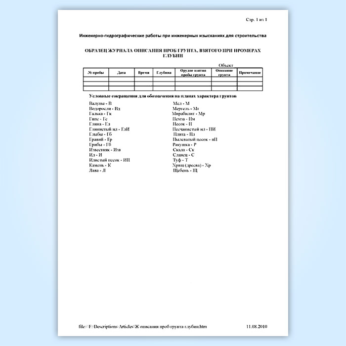 Журнал описания проб грунта, взятого при промерах в Великом Новгороде купить
