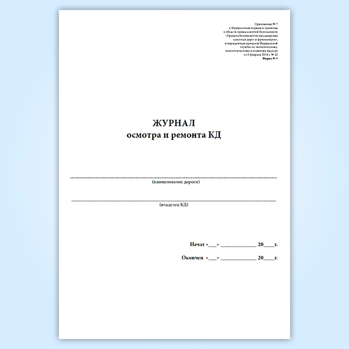 Журнал осмотра и ремонта канатной дороги. Несущий канат (форма № 1) в Великом Новгороде купить