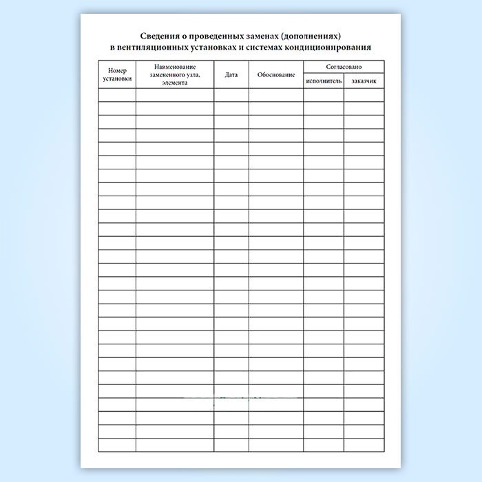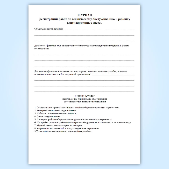 Журнал по техническому обслуживанию вентиляционных систем (систем кондиционирования) в Великом Новгороде купить